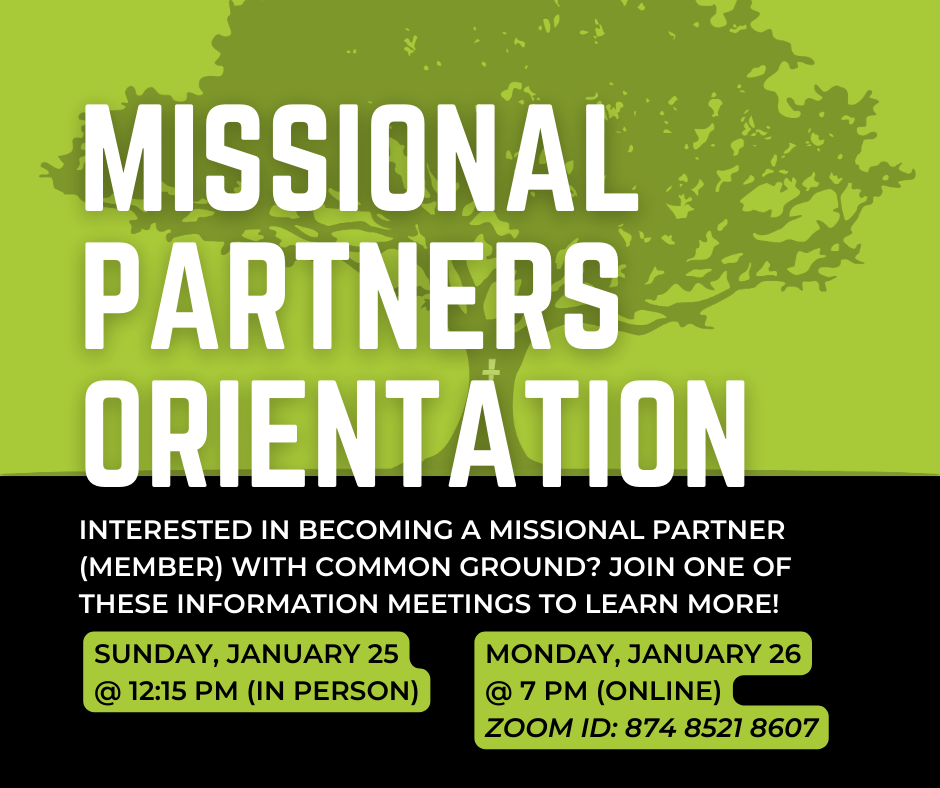 Here at Common Ground we believe in growing together as a community. On this page you will find a wide variety of ways to engage, fellowship and witness the love of God.