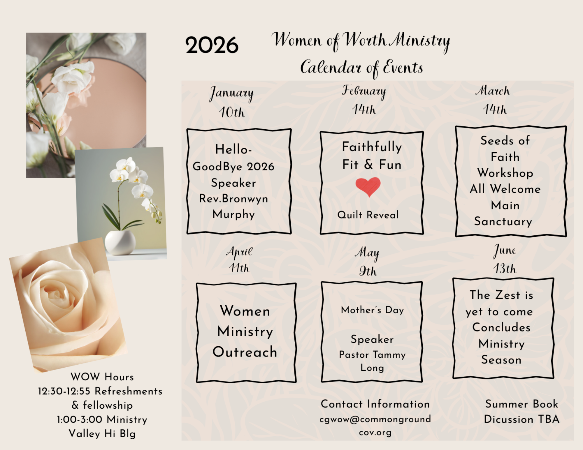 To see women grounded in God’s Word, strong in faith, and radiant in love. Women who carry the light of Christ into their homes, workplaces, and communities. Together, we grow, go, and serve in His grace.